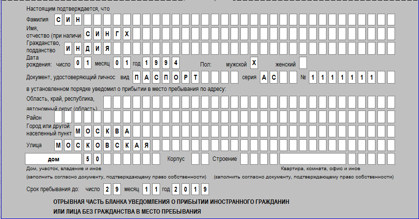 Администратор гостиницы оформит уведомление о прибытии, не забудьте получить его.